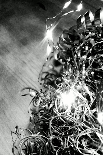 | My stepmoms Christmas wreath. Yes, this is metal with stringlights and four e-candles. Great for children and it won´t catch fire. |
